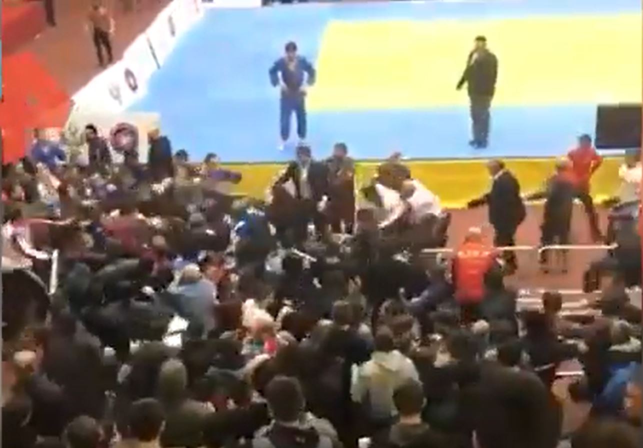 بالفيديو.. شجار عنيف في حلبة جودو يتحول إلى معركة جماهيرية