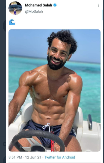 نشر المصري محمد صلاح نجم ليفربول صورة على حسابه في "تويتر"، واضطر إلى حذفها بعد أقل من ساعة على نشرها، بعد أن خافه التوقيت في النشر خصوصاً أنها تزامنت مع الإصابة الخطيرة للاعب الدنمارك كريستيان إريكسن الذي توقف قلبه وسقط في الملعب، أمس السبت، أثناء مباراة منتخب بلاده أمام فنلندا في نهائيات كأس أمم أوروبا.