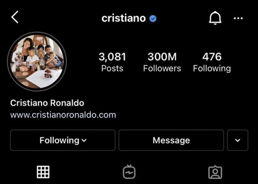 وجه "الدون" البرتغالي كريستيانو رونالدو ضربة قوية إلى المشاهير في العالم ونجمي كرة القدم الأرجنتيني ليونيل ميسي والبرازيلي نيمار بعد أن ارتفع أعداد متابعيه على موقع التواصل الاجتماعي "إنستغرام" إلى 300 مليون شخص، ليصبح أكثر شخص في العالم يصل إلى هذا الرقم من المتابعين.