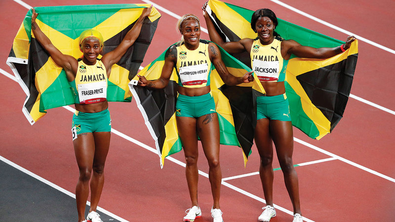فرضت جامايكا نفسها بقوة، وسيطرت على عرش أسرع سباق للسيدات في منافسات ألعاب القوى الأولمبية 100م، حيث اكتسحت الميداليات الثلاث أمس، بعد فوز الجامايكية إيلاين تومسون هيراه بالذهبية، وتسجيل رقم أولمبي جديد، وعادت الفضية والبرونزية لمواطنتيها، شيلي آن فرايزر برايس، وشيريكا جاكسون.