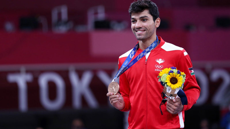 اكتفى الأردني عبدالرحمن المصاطفة بالبرونزية، مانحاً بلاده ثانية ميدالياتها في الألعاب الأولمبية في طوكيو، بعد خسارته أمس في نصف نهائي وزن -67 كلغم في منافسات الكاراتيه. وتأهل المصاطفة إلى نصف النهائي متصدراً لمجموعته بالعلامة الكاملة، محققاً ثماني نقاط من أربع مواجهات، بعد انسحاب الإيطالي أنجيلو كريتشينتسو.