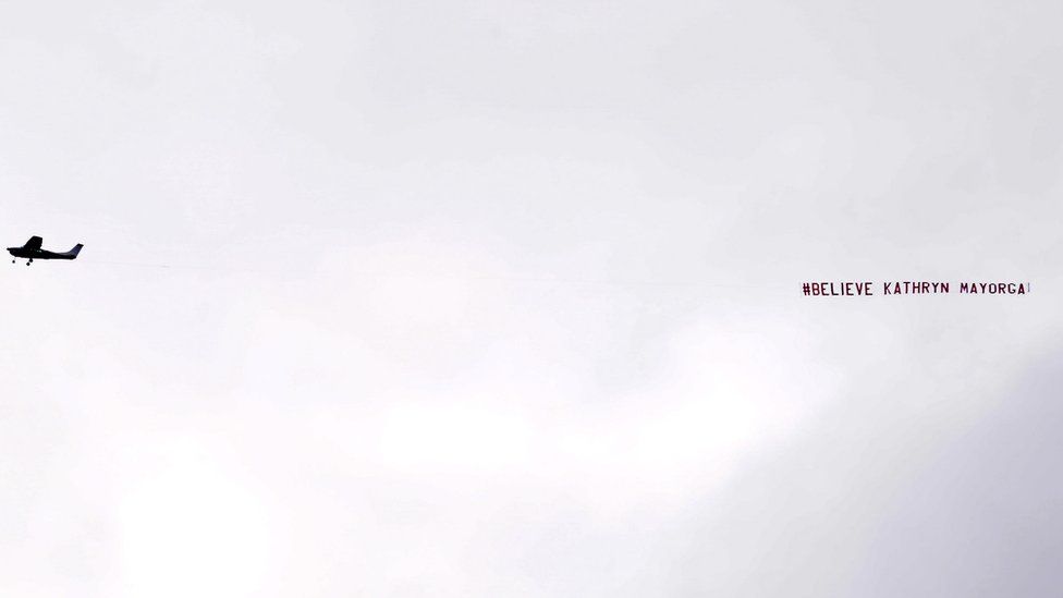 وكانت عارضة الأزياء الأمريكية مايورغا، قد اتهمت لاعب نادي مانشستر يونايتد الحالي بتهمة الاعتداء الجنسي، ولكن الأخير أصر على نفي تلك التهمة واعترف أن ما حدث بينه وبين تلك الفتاة كان بموافقتها، ودخل كريستيانو رونالدو في دوامة منذ أعوام حين اتهمته كاثرين مايورغا باغتصابها خلال إحدى سهراته داخل فنادق بلاس فيغاس الأمريكية عام 2009، ونقلت العديد من وسائل الإعلام العالمية صور الطائرة واللافتة وما كتب عليها في ليلة الظهور الأول لرونالدو.