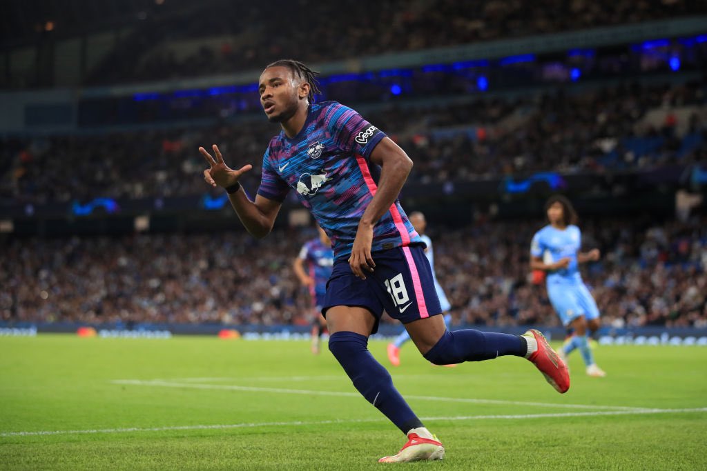 الفرنسي كريستوفر نكونكو - أول لاعب يسجل هاتريك في تاريخ لايبزيغ في دوري ابطال اوروبا بعد تألقه أمام مان سيتي.
