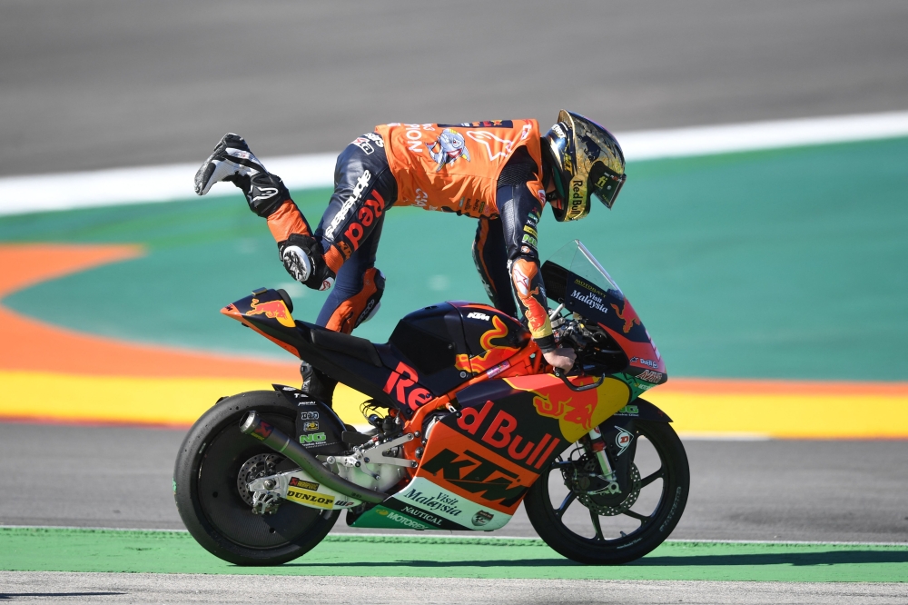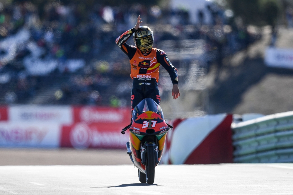 أصبح الإسباني بيدرو أكوستا الأحد ثاني أصغر بطل عالم في التاريخ في فئة موتو 3 عندما ظفر به في سن الـ17 عاما بإحرازه المركز الأول في سباق جائزة الغارف الكبرى، المرحلة الـ17 قبل الأخيرة من بطولة العالم للدراجات النارية، على حلبة بورتيماو البرتغالية.