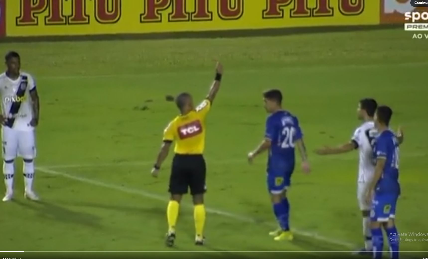 تداول رواد مواقع التواصل الاجتماعي فيديو للاعب يركل حكماً خلال مباراة في دوري الدرجة الثانية البرازيلي وسط دهشة زملائه والحضور.