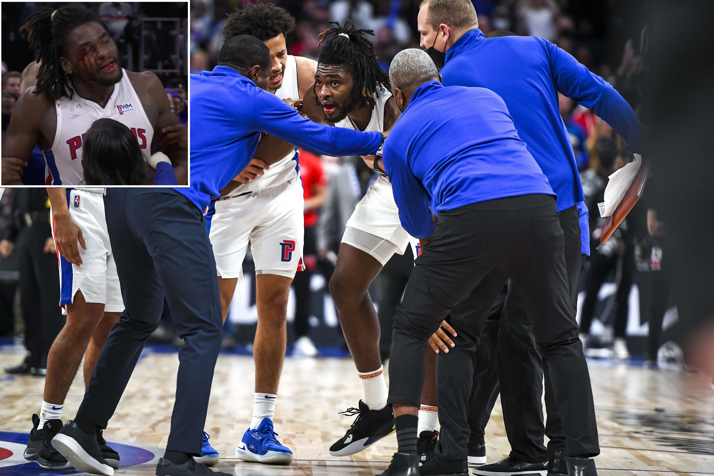 Lebron James is a 36 year old man scrapping the face of a 20 year old Isaiah Stewart and making him bleed because Stewart was trying to go for a board. Horrible. pic.twitter.com/i5PYTeWQa0