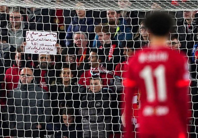 وشهدت مباراة بورتو لقطة غريبة، حين ظهر أحد المشجعين لليفربول، في ملعب "أنفيلد" خلف المرمى، وهو يحمل لافتة توجه خلالها بطلب إلى محمد صلاح للحصول على قميصه، وقال فيها "محمد صلاح، أريد قميصك، الله يوفقك في الدنيا والآخرة".