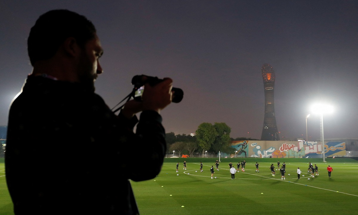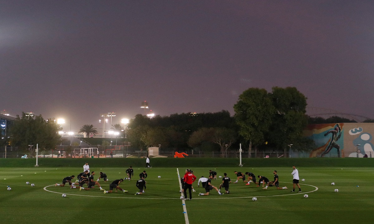 وكان المنتخب يجري عملية احماء وسط ملعب تدريبي، قبل الانتقال الى استاد 974 الذي يستضيف المباراة ويتسع الى 40 ألف متفرج.