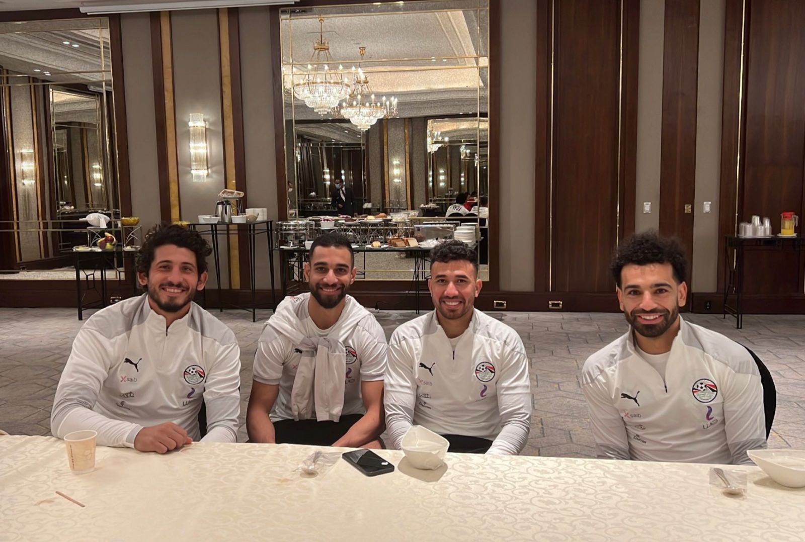 انضم اللاعب الدولي محمد صلاح هداف الدوري الإنجليزي وفريق ليفربول إلى تدريبات المنتخب المصري المقامة في القاهرة صباح أمس الأربعاء وذلك قبل التوجه إلى الكاميرون لخوض مباريات كأس الأمم الإفريقية، وحرص النجم المصري على نشر أول صورة له من داخل فندق تجمع المنتخب المصري وكانت تجمعه مع 3 لاعبين، هم عمرو السولية وأحمد حجازي ومحمود تريزيغيه.