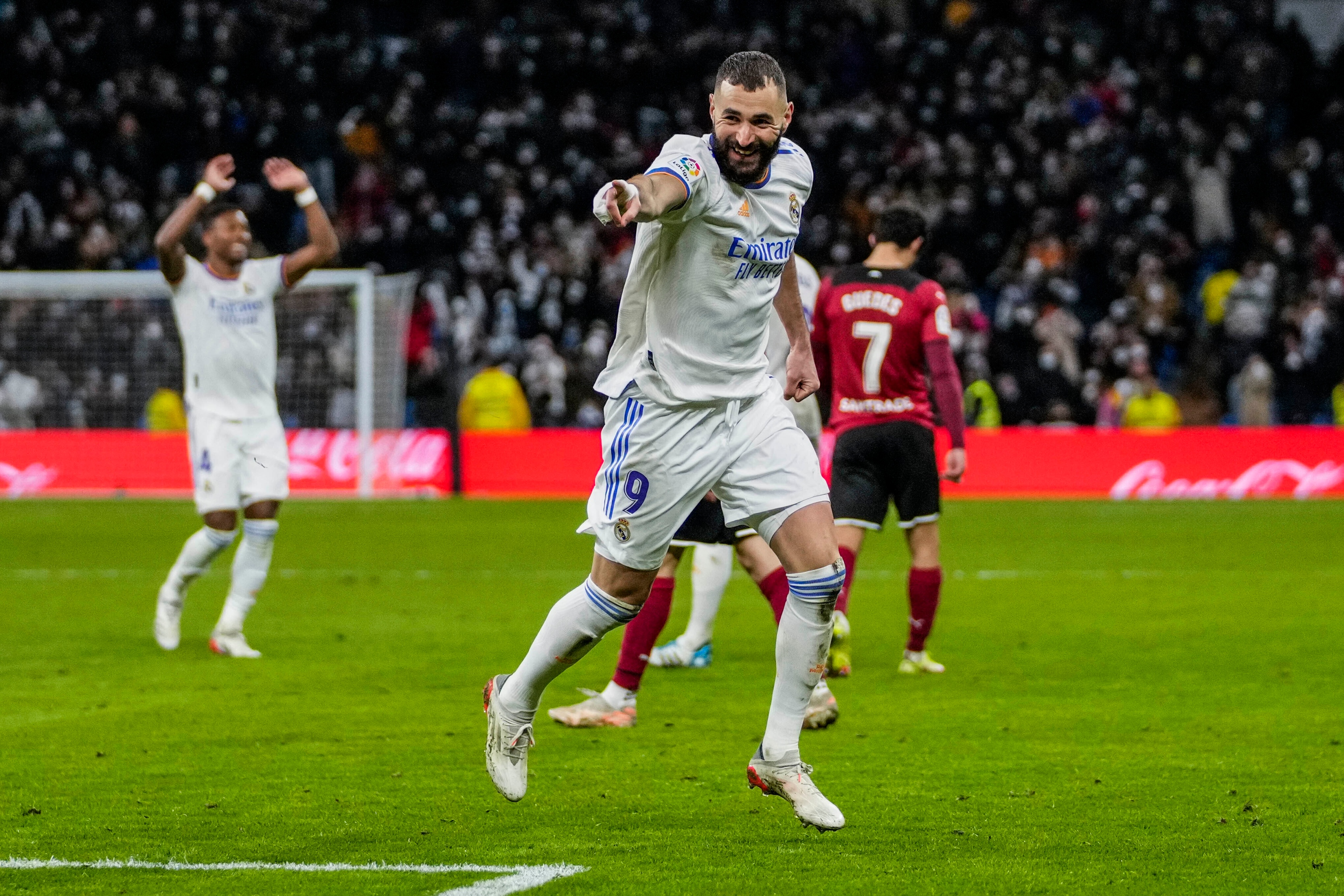 سجّل أهداف ريال كل من بنزيمة هدفين (43 من ركلة جزاء و88)والعائد إلى تشكيلة الفريق بعد تعافيه من فيروس كورونا فينيسيوس جونيور هدفين (52 و61).