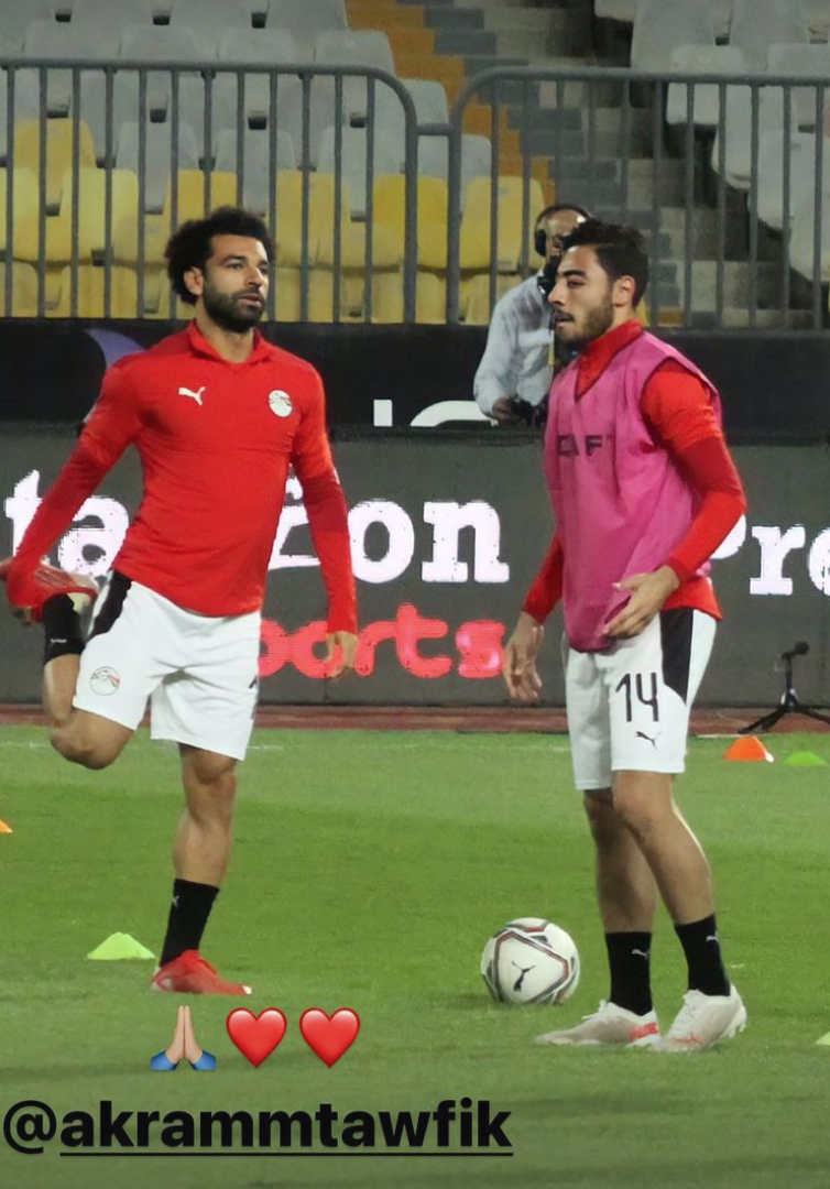 حرص قائد منتخب مصر و هداف ليفربول والدوري الإنجليزي محمد صلاح، على الظهور بعد الخسارة أمام نيجيريا في بداية مشوار الفراعنة في بطولة إفريقيا، وكان هذا الظهور لمواساة مدافع منتخب مصر والنادي الأهلي أكرم توفيق، حيث تمنى قائد الفراعنة الشفاء العاجل من خلال صورة قام بنشرها.