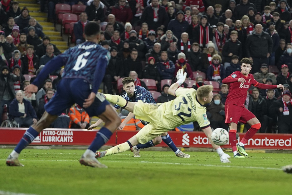 فرض أرسنال بعشرة لاعبين التعادل السلبي على مضيفه ليفربول في ملعب "أنفيلد" الخميس في ذهاب الدور نصف النهائي من كأس الرابطة الانجليزية لكرة القدم، بعد أن لعب منقوصًا منذ الدقيقة 24 إثر طرد لاعب وسطه السويسري غرانيت تشاكا.