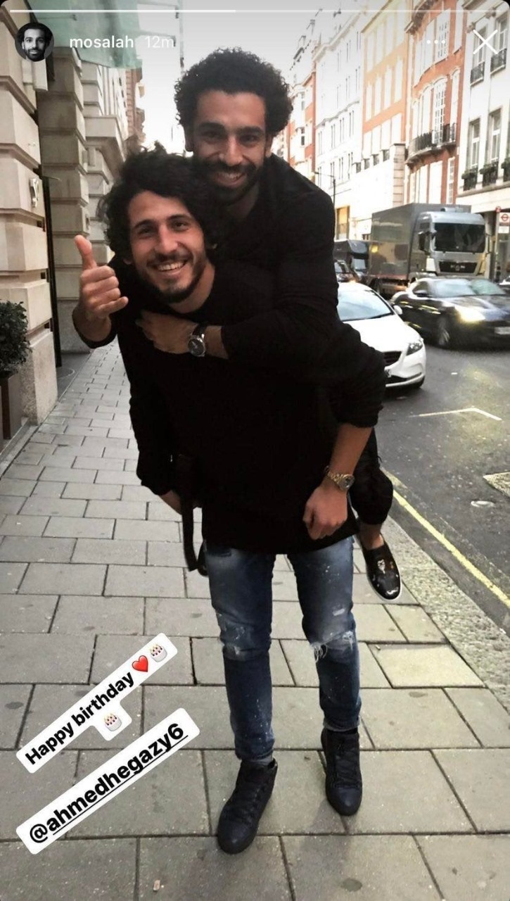 احتفل نجم المنتخب المصري وهداف ليفربول والدوري الإنجليزي محمد صلاح، بطريقة مختلفة بعيد ميلاد صديقه لاعب المنتخب المصري وفريق الاتحاد السعودي أحمد حجازي الذي أتم 31 عاما، وقال صلاح بنشر صورة ضاحكة عبر خاصية «ستوري» في حسابه على «أنستغرام» أظهرته وهو يقفز على ظهر صديقه حجازي بهدف الحصول على لقطة «كوميدية» تبقى للذكرى.