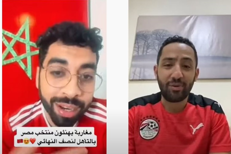 انتشرت عبر مواقع التواصل الاجتماعي مقاطع فيديو لجماهير مصرية ومغربية "محترمة" عبرت عن فخرها بالمستوى الفني العالي لكلا المنتخبين خلال المباراة التي جمعتهما، الأحد، في الدور ربع النهائي من بطولة أمم أفريقيا لكرة القدم المقامة حالياً في الكاميرون وانتهت بفوز المصريين بهدف نظيف سجله النجم محمود حسن "تريزيغيه".