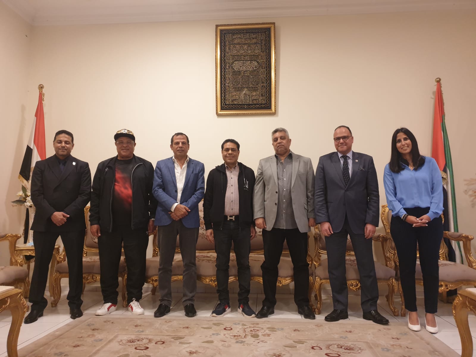 ويضم وفد النادي الأهلي كلا من طارق قنديل، عضو مجلس الإدارة، ورئيس لجنة العضوية، وماريان ديمتري، نائب مدير التسويق، ومحمد رمضان، نائب مدير الاشتراكات، وكان في استقبالهم بالنادي المصري في دبي المهندس أحمد أبوعجيلة رئيس مجلس إدارة النادي ونائبه المهندس أحمد عبد العزيز جمعة، وعبد الفتاح إسماعيل المفوض من النادي الأهلي المصري للتنسيق مع الأندية المصرية في الإمارات، والدكتور ناجي إسماعيل.