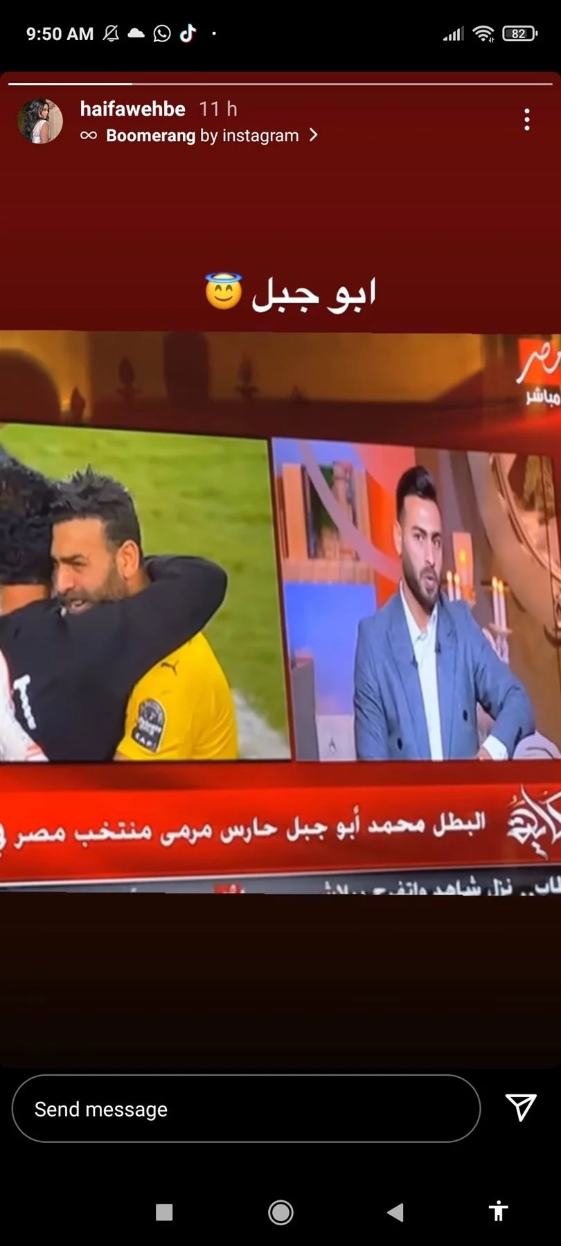 وتفاعلت النجمة اللبنانية هيفاء وهبي مع حلقة محمد أبوجبل مع الإعلامي المصري عمرو أديب في برنامج الحكاية على قناة «أم بي سي مصر»، حيث نشرت صورته عبر خاصية ستوري على موقع التواصل الاجتماعي «إنستغرام».