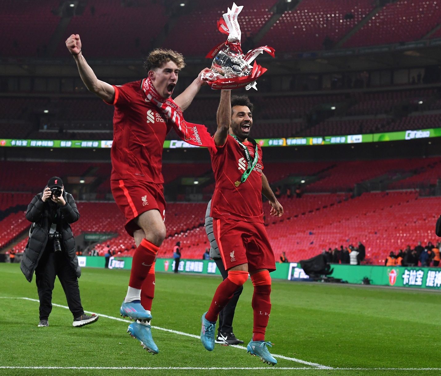 وبعد المباراة، نشر صلاح على حسابه في موقع «إنستغرام»، صورة وهو يحمل كأس الرابطة بالإضافة إلى أخرى من احتفاله مع زملائه في ليفربول داخل غرفة خلع الملابس، وعلق على الصورتين قائلا: «واحد آخر»، في إشارة إلى تتويجه بلقب جديد مع ليفربول.