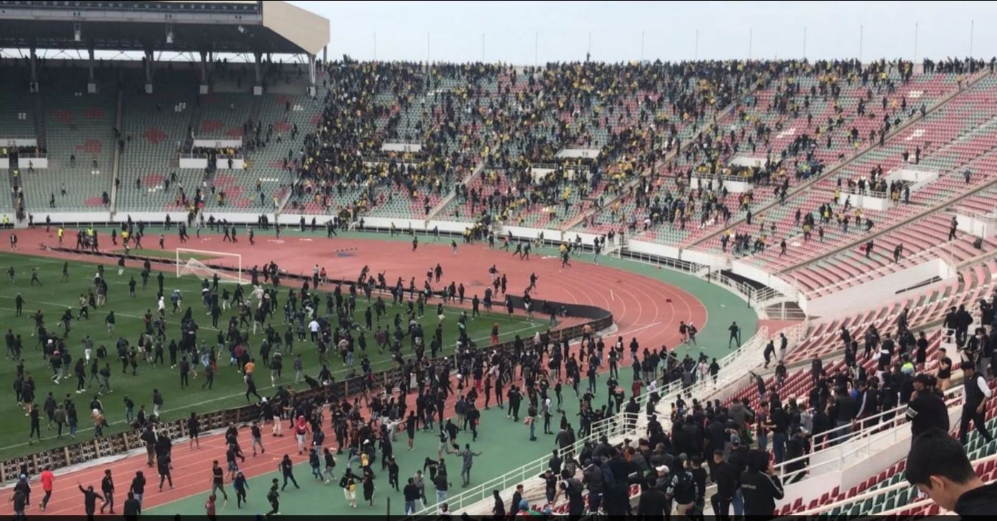 وأظهرت فيديوهات على موقع فيسبوك جماهير ترشق قوّات الأمن من المدرّجات، قبل أن تهاجمها وتقتحم أرضيّة الملعب.
