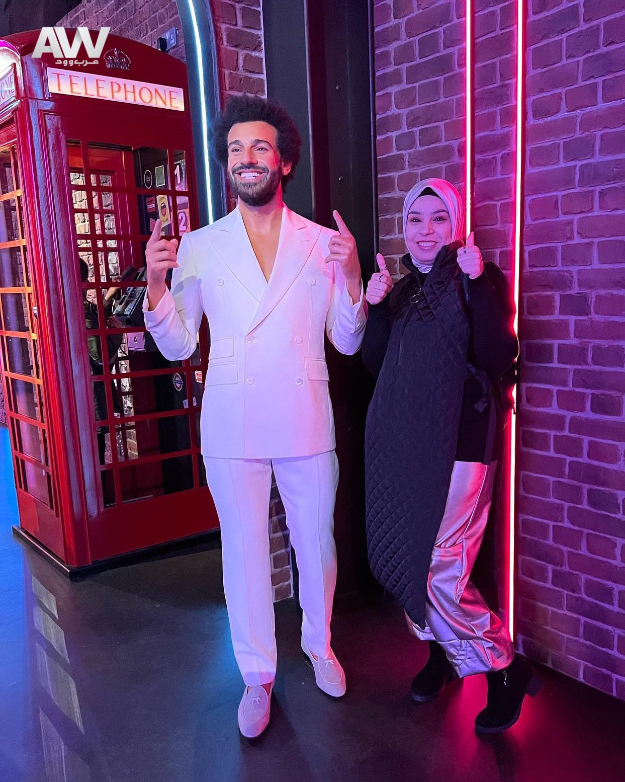 ظهرت رباب صلاح، شقيقة النجم المصري وهداف ليفربول والدوري الإنجليزي محمد صلاح، بجوار تمثال شقيقها فى متحف مدام توسو فى لندن.