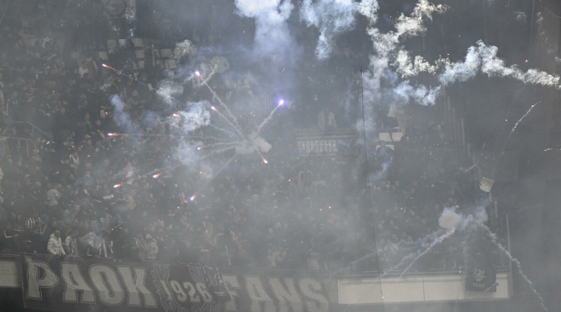 كما أطلقت جماهير مرسيليا ألعابًا نارية في اتجاه المدرجات المخصصة للجماهير اليونانية ما أدى الى تحرك المشجعين من مكانهم قبل أن تلقي الشرطة الغاز المسيل للدموع في اتجاه المناصرين اليونانيين.