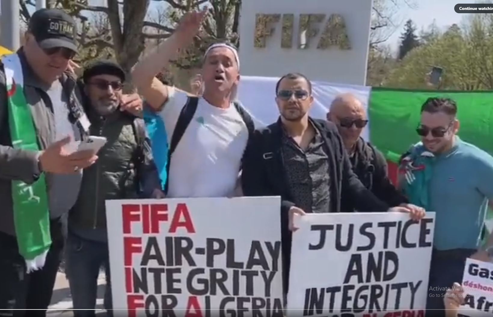 تداول رواد مواقع التواصل الاجتماعي فيديوهات لجماهير جزائرية نظمت وقفة احتجاجية أمام مقر الاتحاد الدولي لكرة القدم "فيفا" في مدينة زيورخ السويسرية، احتجاجا على نتيجة مباراة منتخب بلادهم مع الكاميرون والتي يعتبرونها ظالمة بسبب الأخطاء الكارثية التي ارتكبها الحكم الغامبي بكاري غاساما وأقصت "محاربي الصحراء" من سباق التأهل لمونديال قطر 2022.