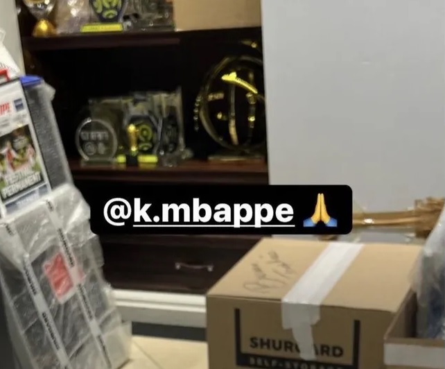 وقالت الصحيفة إن مبابي شكر الفنان أورا إيتو على إهدائه قميصا موقعا. وفي خلفية الصورة المنشورة يظهر رف فيه بعض جوائز مبابي معبأة ومغلفة، إلى جانب صناديق من الورق المقوى، وصحف مغلفة أيضا تتحدث عنه.