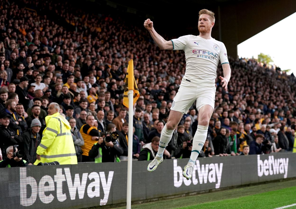 سجل البلجيكي كيفن دي بروين رباعية من خماسية فريقه مانشستر سيتي المتصدر وقاده للفوز على مضيفه ولفرهامبتون 5-1 معيداً فارق النقاط الثلاث بينه وبين مطاره المباشر ليفربول، في مباراة مؤجلة من المرحلة الثالثة والثلاثين من الدوري الانكليزي لكرة القدم. وسجل دي بروين "سوبر هاتريك" في الدقائق 7 و16 و24 و60، رافعاً رصيده إلى 19 هدفاً في مختلف المسابقات هذا الموسم. فيما اختتم زميله رحيم سترلينغ المهرجان التهديفي (84). وسجل البلجيكي لياندر ديندونكر (11) هدف ولفرهامبتون الوحيد.