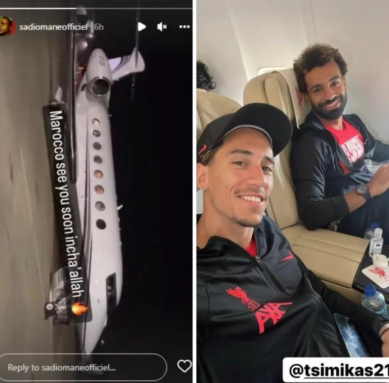 ونشر ساديو مانيه صورة الطائرة التي ستقله إلى المغرب، في حين ظهر محمد صلاح داخل الطائرة التي ستنقل بعثة ليفريول إلى ألمانيا.