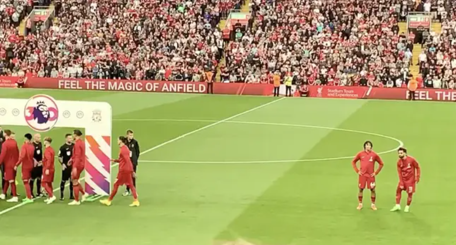 وظهر أرنولد وصلاح شاردي الذهن خلال وقوف الفريق مع طاقم التحكيم قبل ضربة البداية، وحين بدأ اللاعبون يتحركون للسلام على طاقم التحكيم، والفريق الضيف، ظل صلاح وأرنولد واقفان وغير مدركين أنه يتوجب عليهما الذهاب لمصافحة لاعبي الفريق الخصم، إلا بعد فترة، حيث قاما بالهرولة للحاق بزملائهم.
