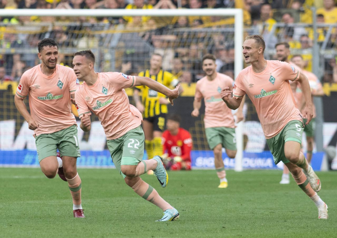 شهدت الجولة الثالثة من الدوري الألماني لكرة القدم لأندية الدرجة الأولى أمس مباراة لا تتكرر كثيرا. ففي سيناريو مجنون كانت المباراة تسير بطريقة مميزة بالنسبة لفريق دورتموند أمام ضيفه فيردر بريمن في ملعب سيغنال بارك، إذ حتى الدقيقة 88 كان متقدما بهدفين لصفر، وضامنا لفوز ثمين، لكن ست دقائق كانت كفيلة بتغيير الفوز إلى خسارة لأصحاب الأرض. فبعد سيطرة مطلقة على اللعب، سجل دورتموند بداية عن طريق يوليان برانت في الوقت بدل الضائع للشوط الأول، ثم عزز البرتغالي غيريرو النتيجة والتقدم في الشوط الثاني وبالضبط في الدقيقة 77.