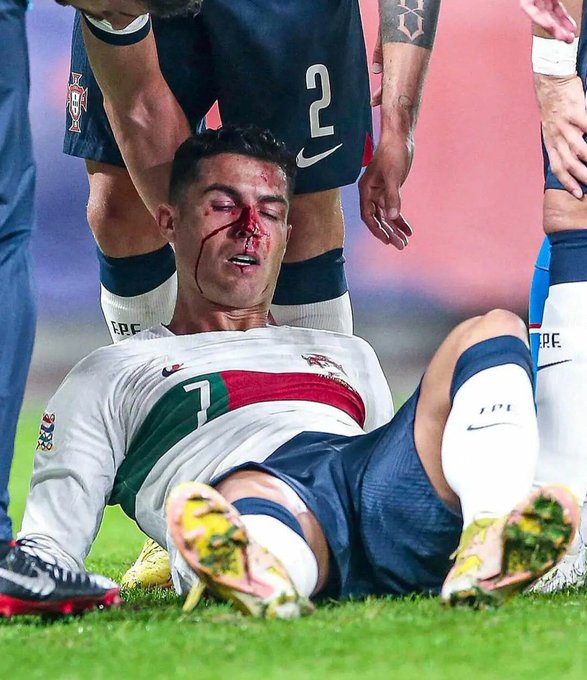 أصيب قائد منتخب البرتغال كريستيانو رونالدو، في الوجه خلال قيادته لمنتخب بلاده في مباراة البرتغال والتشيك والتي انتهت لصاله الأول برباعية نظيفة، وذلك ضمن منافسات الجولة الخامسة من دور المجموعات في مسابقة دوري الأمم الأوروبية.