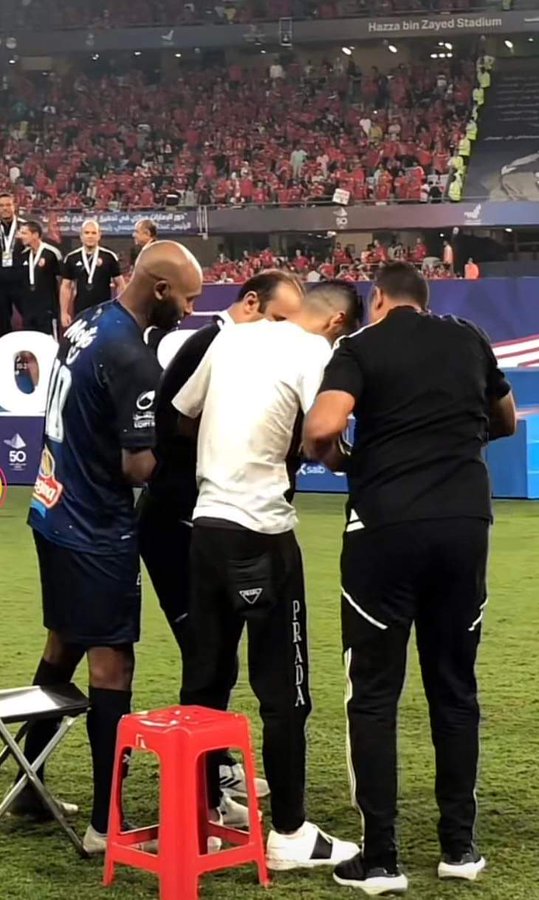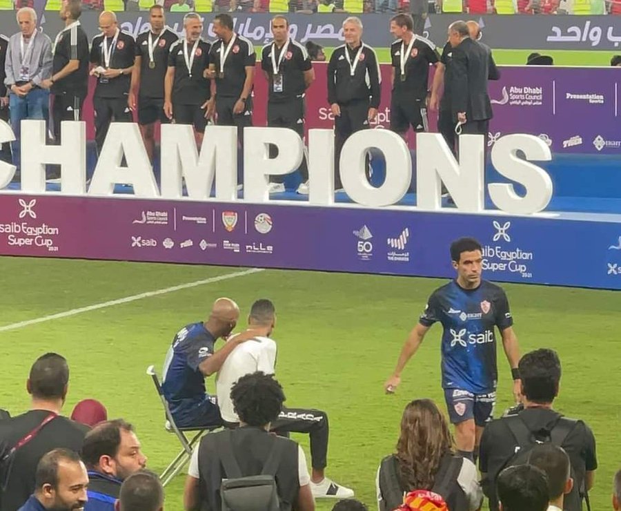 ونشر حساب قناة أبوظبي الرياضية عبر منصة "تيك توك" فيديو أثناء خروج شيكابالا، وهو يمسك في يده مؤمن زكريا، وذهب إلى منصة التتويج في الأهلي وقابله مدير الكرة في النادي الأهلي سيد عبد الحفيظ وأحد أفراد الطاقم الفني بالأهلي وقاما بمعانقة شيكابالا، واستلام مؤمن زكريا منه ليصعد إلى منصة التتويج.
