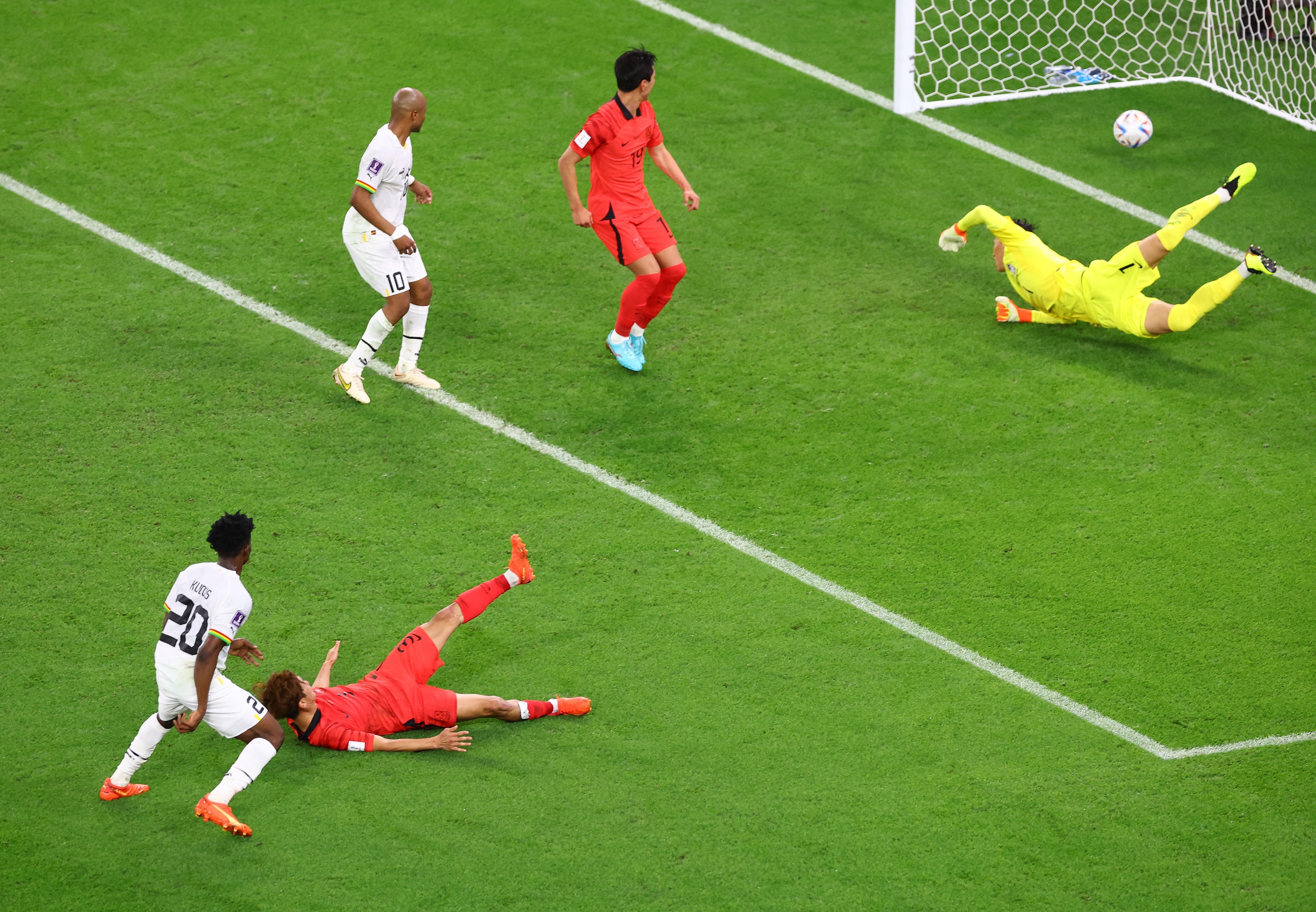 حقق منتخب غانا فوزاً مثيراً على نظيره الكوري الجنوبي بثلاثة أهداف مقابل هدفين في مباراة مجنونة بالجولة الثانية من مباريات المجموعة الثامنة لكأس العالم 2022.