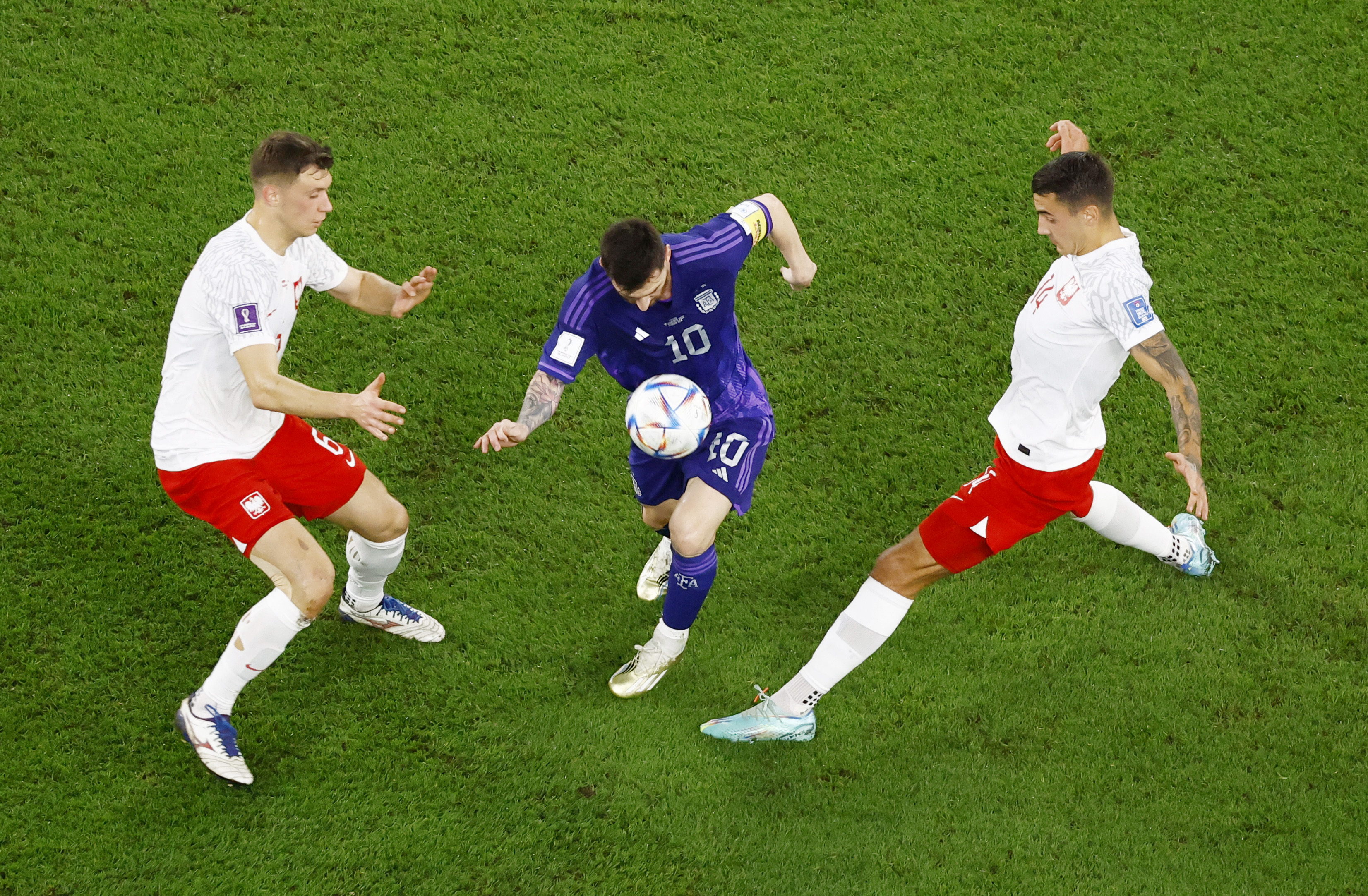 وفي المجموعة الثانية صعد المنتخب الإنجليزي متصدراً برصيد 7 نقاط أيضاً والمنتخب الأمريكي برصيد 5 نقاط، بينما ودعت إيران وويلز، وفي المجموعة الثالثة الجماهيرية النارية صعد المنتخب الأرجنتيني رغم الخسارة التاريخية أمام السعودية في بداية المباريات بالبطولة، ونجح الأرجنتين في الفوز بمباراتين برصيد 6 نقاط وجاء المركز الثاني منتخب بولندا برصيد 4 نقاط وهو نفس رصيد المكسيك ولكن المنتخب البولندي بسبب قاعدة اللعب النظيف بعد التساوي في فارق الأهداف حيث حصل المكسيك على 6 بطاقات صفراء مقابل 4 بطاقات لبولندا