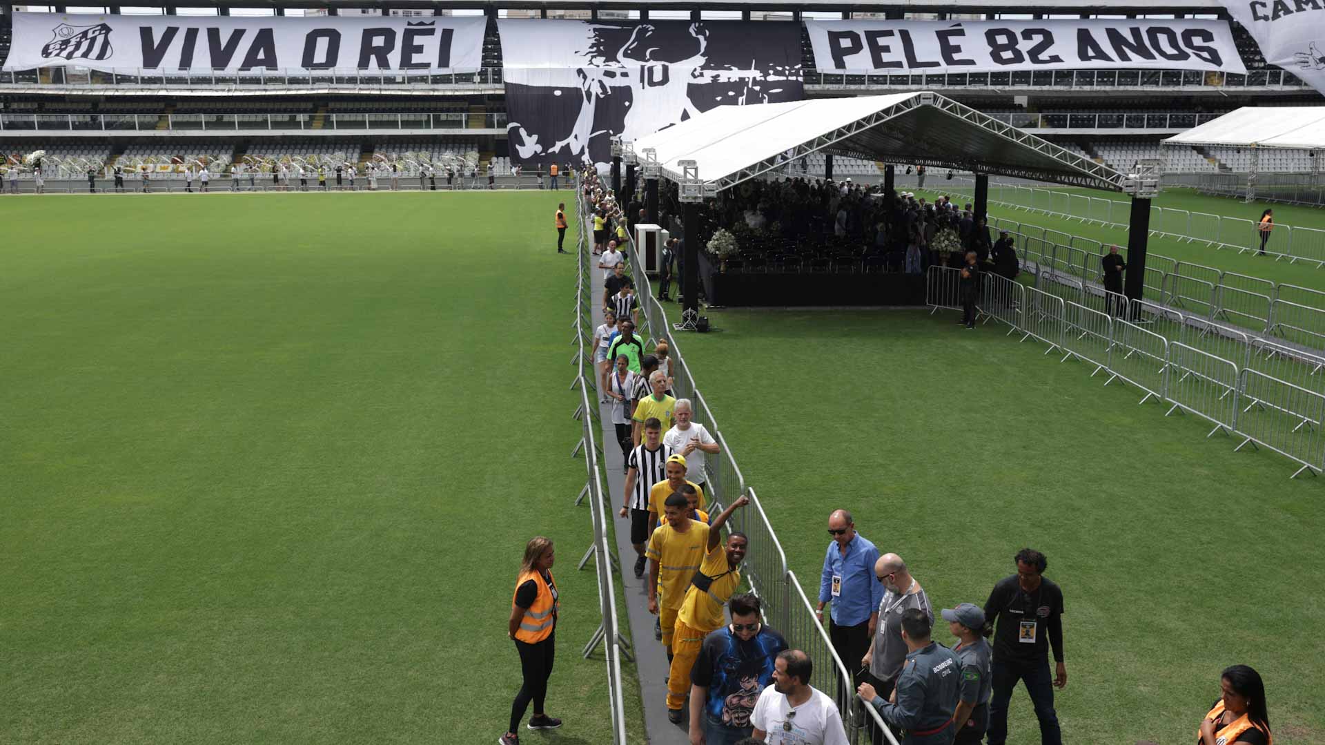 وقف آلاف المعزين، وبينهم طلاب مدارس ثانوية وقضاة في المحكمة العليا، يوم الاثنين أمام جثمان بيليه في ملعب عمره قرن من الزمان، حيث جعل بيليه فريق مسقط رأسه أحد أفضل الفرق في البرازيل.