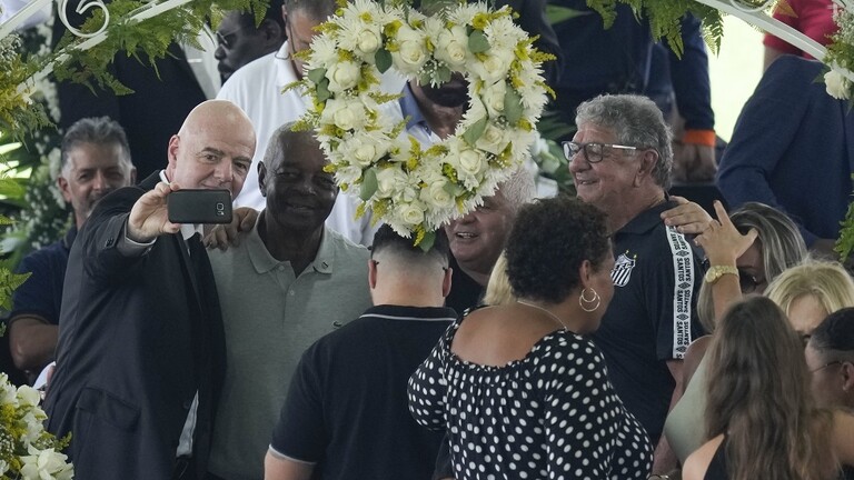 وشارك إنفانتينو في عزاء الأسطورة الذي فارق الحياة يوم الخميس الماضي، عن عمر ناهز 82 عاما، بعد صراع طويل مع مرض السرطان، وقام المشجعون بالوقوف في طابور زاد طوله عن كيلو متر لتوديع الملك البرازيلي في مشهد تاريخي.