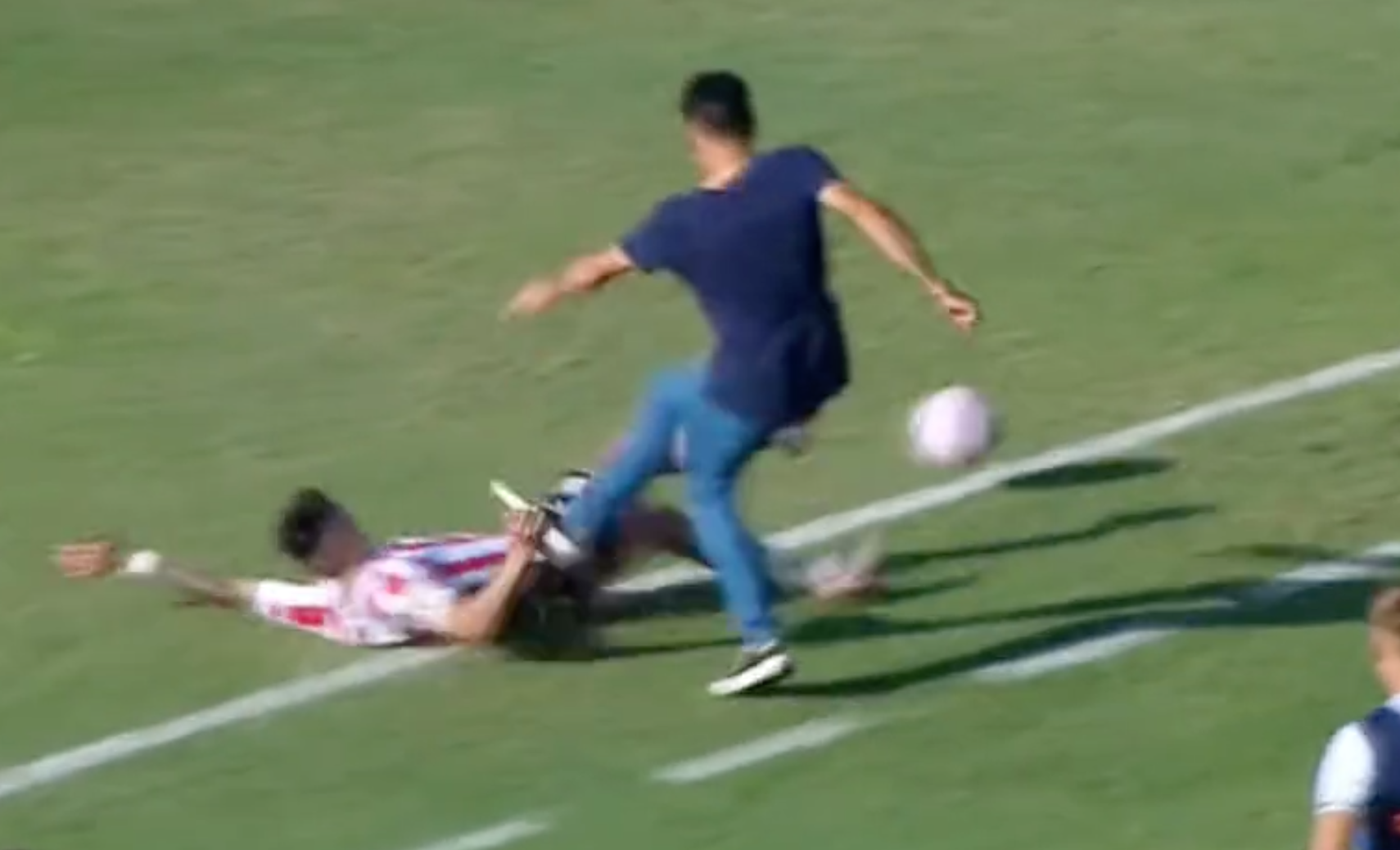 مدرب يعتدي على لاعب أثناء المباراة في مشهد غريب (فيديو)