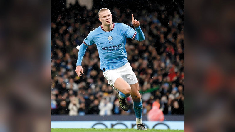 هالاند سجل 30 هدفاً في الدوري الإنجليزي و11 في أبطال أوروبا حتى الآن. أ.ف.ب