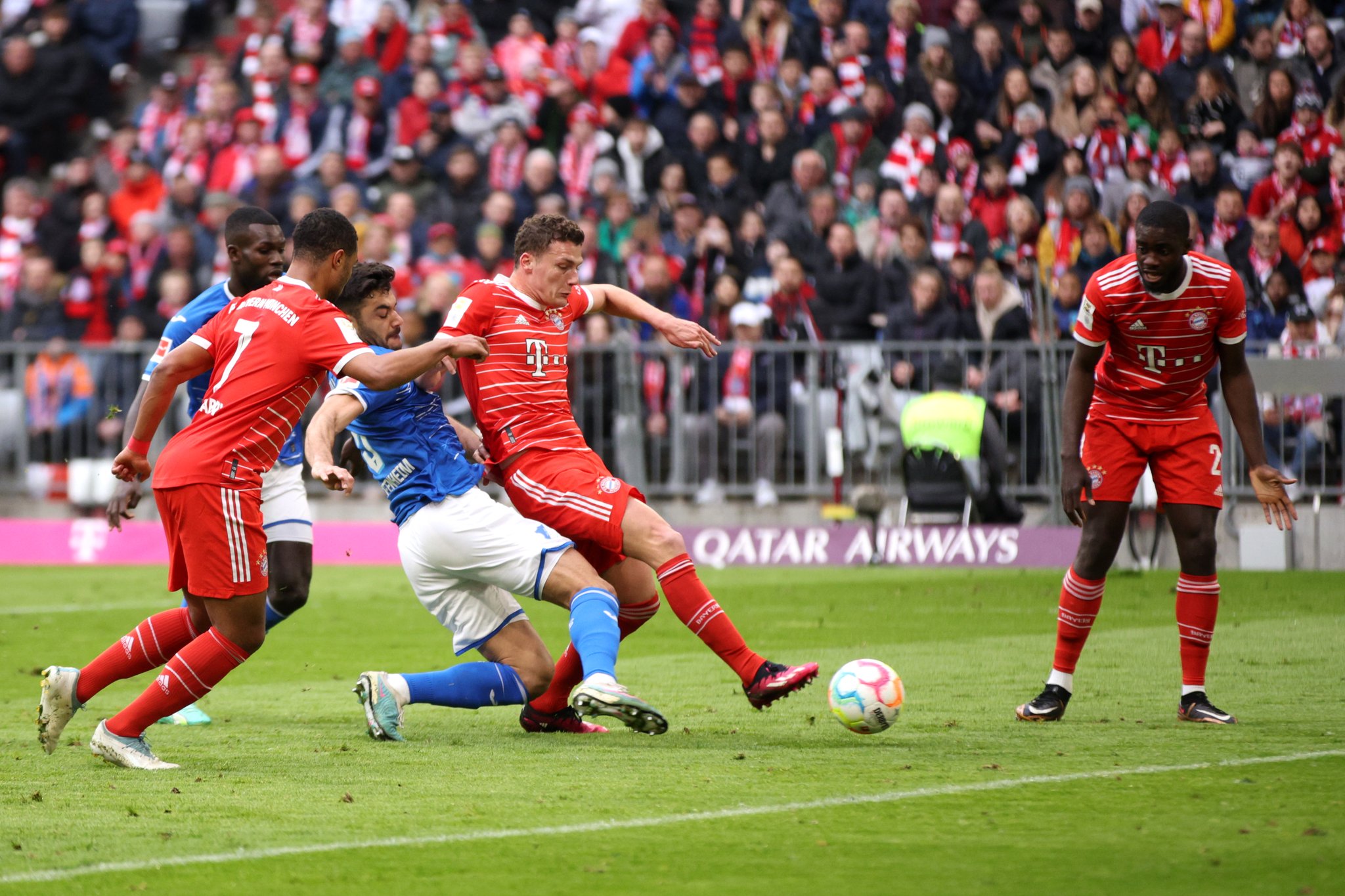 وعلى ملعب أليانز أرينا، أنهى النادي البافاري الشوط الأول من مباراته أمام هوفنهايم، متقدما بهدف سجله الفرنسي بنيامين بافاري في الدقيقة 17.