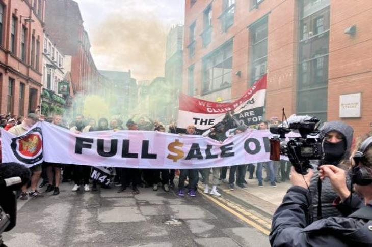 وانطلقت الاحتجاجات من وسط مانشستر حتى وصلت إلى استاد أولد ترافورد، وقد رفع المشجعون لافتة عملاقة تحمل عبارة «البيع الكامل فقط».