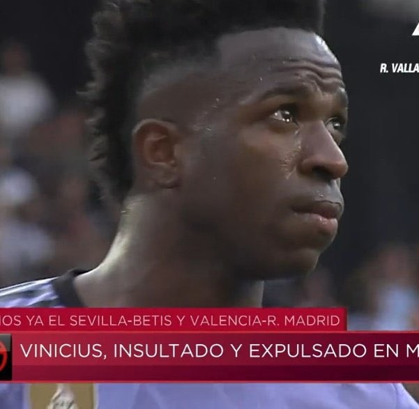 ردّ البرازيلي فينيسيوس جونيور لاعب ريال مدريد على الهتافات العنصرية التي تعرض لها خلال مباراة فريقه مع مضيفه فالنسيا على ملعب "ميستايا" في الدوري الإسباني، والبطاقة الحمراء التي تلقاها نتيجة الشجار العنيف مع لاعبي فالنسيا.