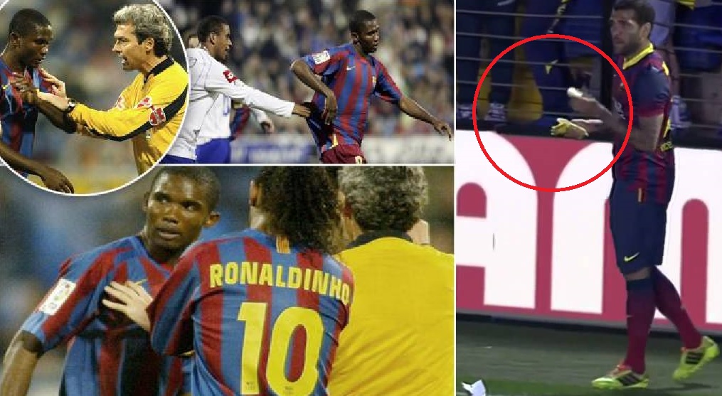 تخلّل السنوات الخمس التي أمضاها الأسطورة الكاميرونية صامويل إيتو في صفوف برشلونة (2004-2009) حوادث عنصرية، على غرار رمي المهاجم الكرة نحو جماهير خيتافي في 2004 بعد وقوعه ضحية لصيحات القردة.