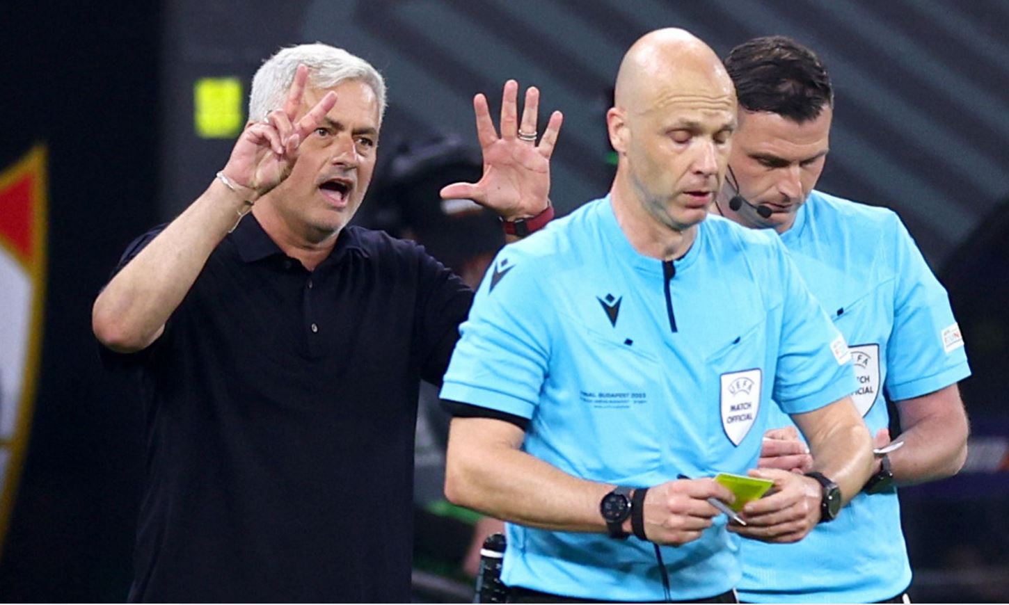 وفي مقطع فيديو تم تصويره في ساحة انتظار السيارات في ملعب "بوشكاش أرينا" في بودابست عقب انتهاء المباراة النهائية التي خسرها روما بركلات الترجيح الأربعاء (1-4 بعد التعادل 1-1)، توجه الفني البرتغالي مراراً وتكراراً بكلمات نابية للحكم الإنكليزي أنتوني تايلور واصفاً إياه بـ "العار".