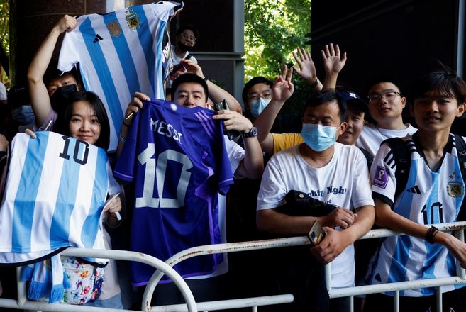 تلقى النجم الأرجنتيني ليونيل الذي يحظى بشعبية كبيرة في الصين، استقبال الأبطال، اليوم السبت، في بكين، بعد وصوله بطائرة خاصة لخوض مباراة ودية في كرة قدم مع منتخب بلاده بطل العالم ضد أستراليا.