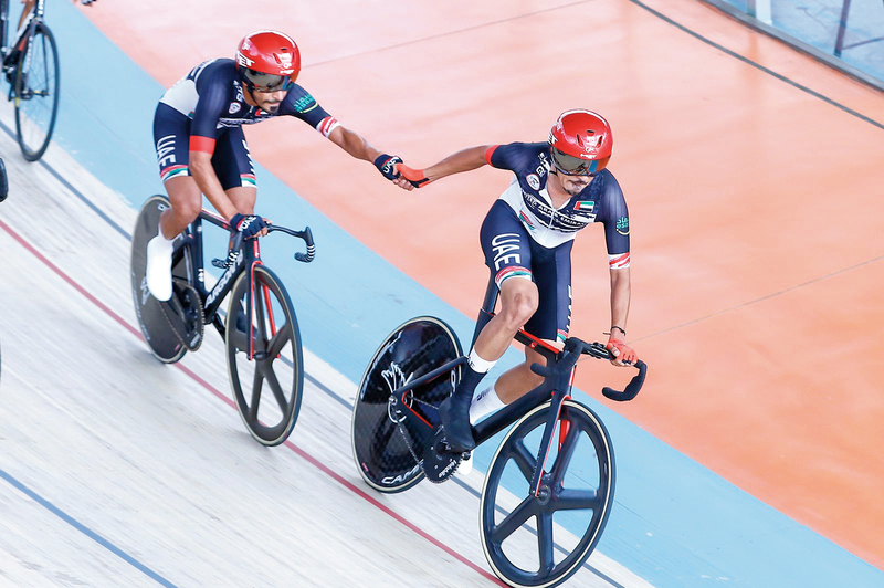 ميرزا والمنصوري في سباق الماديسون ببطولة سابقة. من المصدر