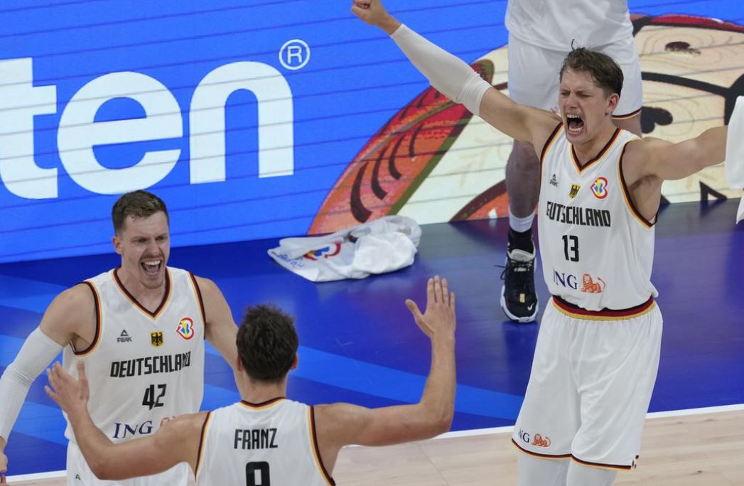 أوقف المنتخب الالماني مغامرة نظيره اللاتفي الشيّقة في كأس العالم لكرة السلة المقامة حاليًا في الفيليبين واندونيسيا واليابان، بعد ان تغلب عليه بشق الأنفاس بنتيجة 81-79 في ربع النهائي في مباراة مثيرة في مانيلا اليوم.