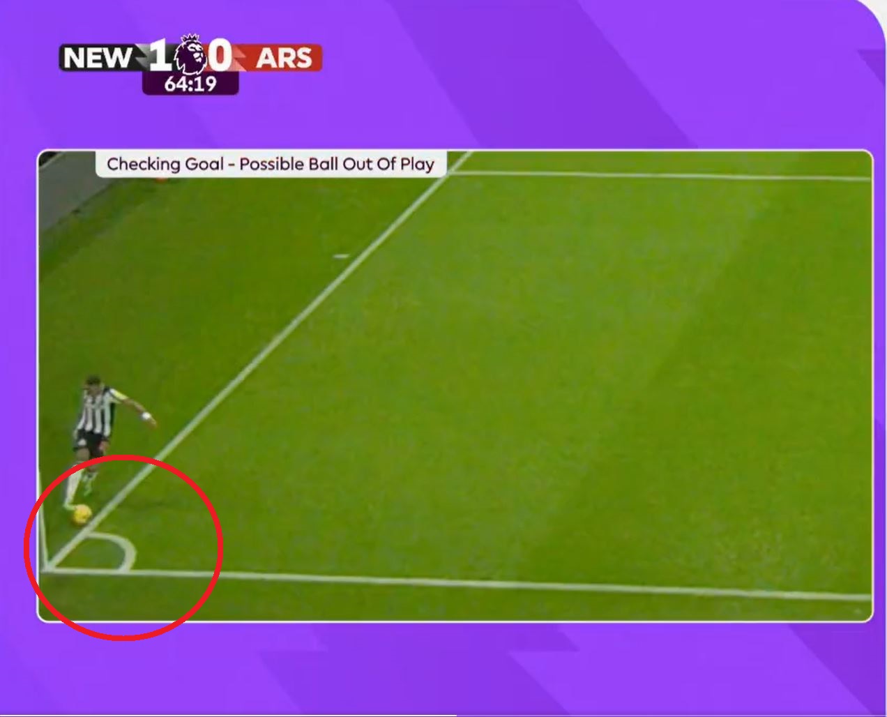 This video shows the ball was IN the field of play in the build-up to Newcastle’s goal against Arsenal. The law states that the entire ball has to cross the line pic.twitter.com/dD3S1Gi4iC