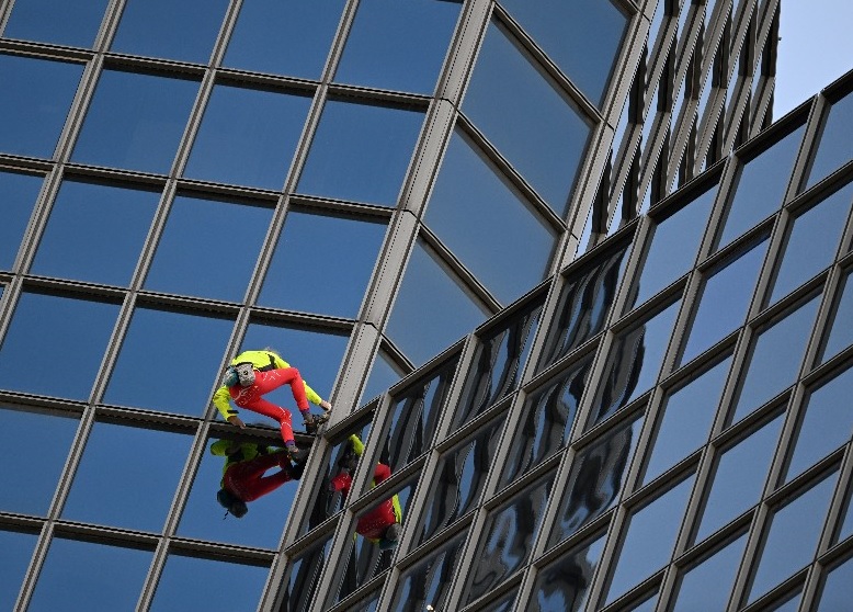 "الرجل العنكبوت" يتسلق برجاً ارتفاعه 179 متراً لتوجيه "رسالة سلام" (صور)