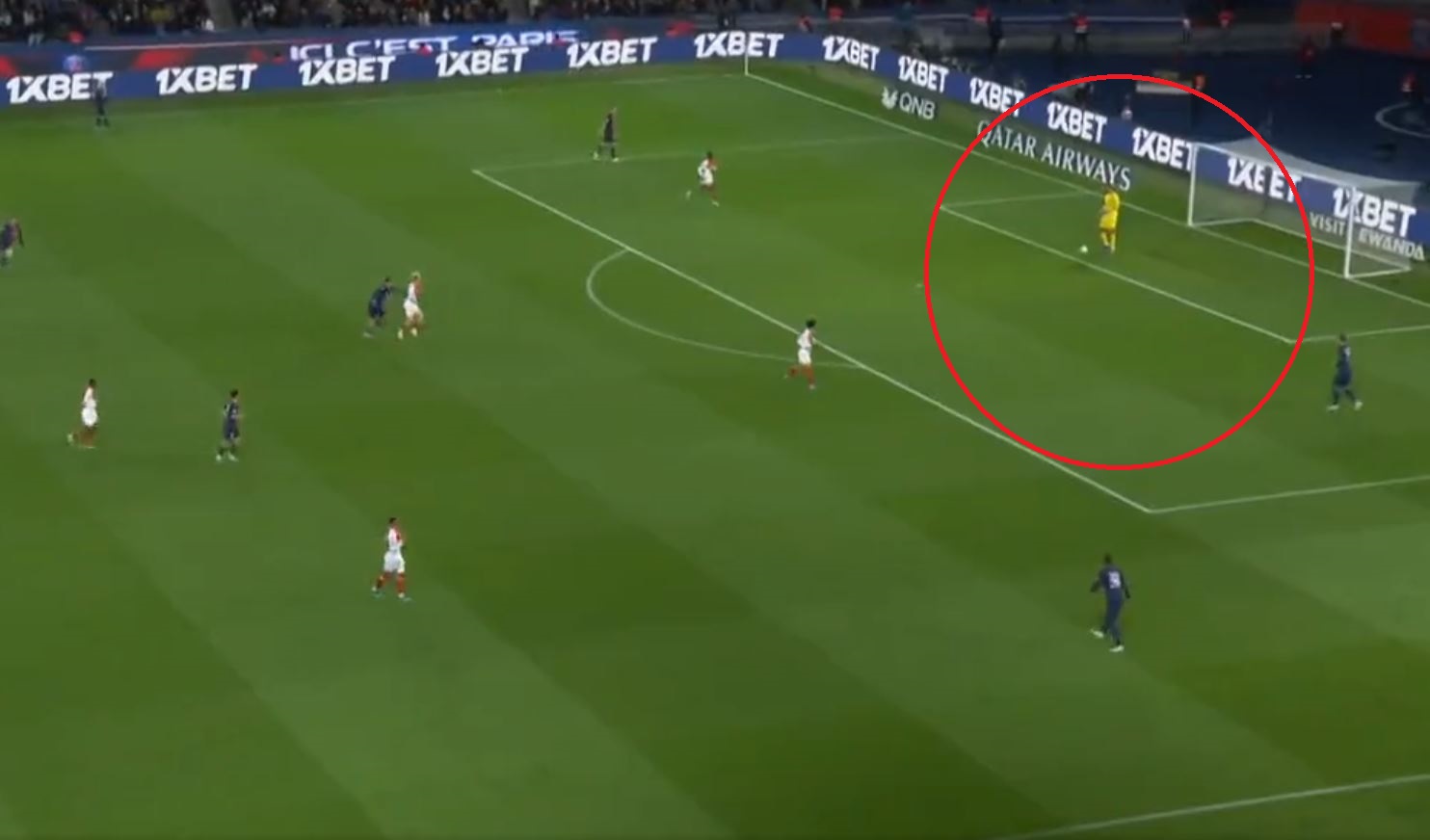 استقبل دوناروما الكرة أمام مرماه وحاول تمريرها لكن ضغط لاعب موناكو أسفر عن تشتيته للكرة بشكل خاطئ لتصل إلى المهاجم الياباني تاكومي مينامينو الذي سددها بقوة في شباك باريس سان جيرمان وسط حالة ذهول للمراقبين.
