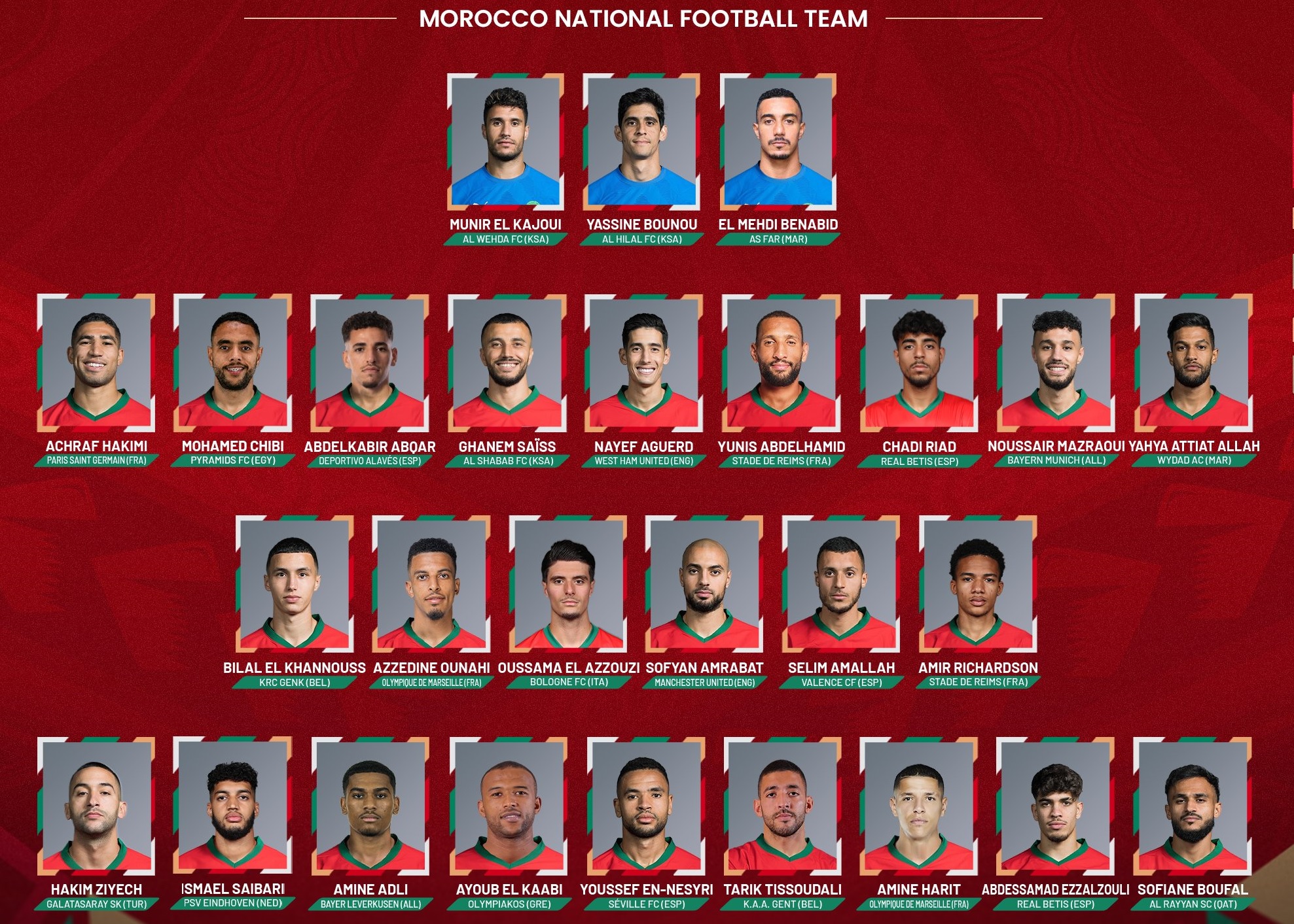 حراسة المرمى: ياسين بونو- منير المحمدي- المهدي بنعبيد.